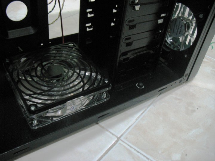 The modding is made by my good friend COMCAM. He did some cutting of holes (120mm for top and bottom, 80mm for front and rear) for the fans and made a custom smoked black acrylic side and front panels.